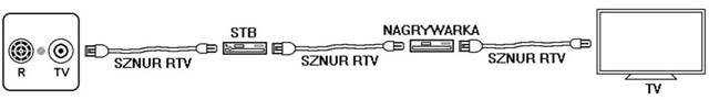 W torze sygnału antenowego telewizora może wystąpić kilka sznurów przyłączeniowych łączących ze sobą kolejno wszystkie urządzenia, np. STB DVB-C, nagrywarkę i wreszcie sam telewizor (rys. poniżej).