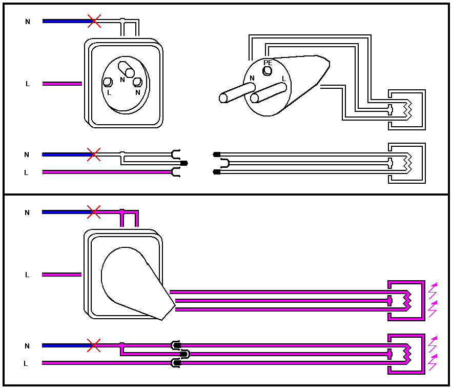 ciągłość przewód zerowy, przy zachowanej ciągłości przewodu liniowego (tego pod